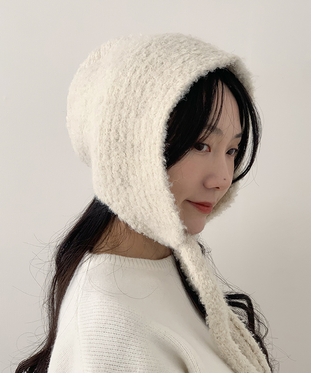 [6컬러] 니드렌 울 부클 니트 귀마개 비니 보넷 벙거지 바라클라바 후드 워머 모자