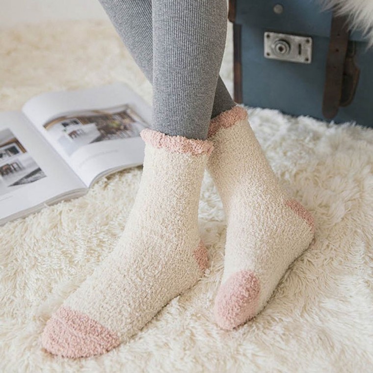 여성 포근 배색 수면양말 1켤레 보온 산모 중목 삭스