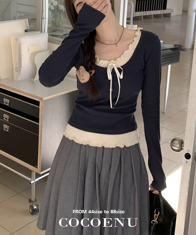 [빅사이즈 3차입고] 44-88 3사이즈 레어프릴티[리본 신학기 하객 신상 긴팔 골지 스판 면 데일리]