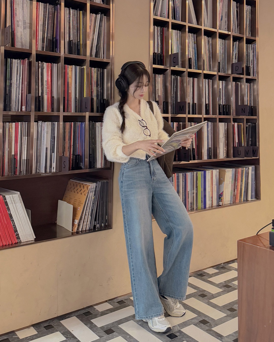 포튼 와이드 데님 팬츠(겨울 청바지 간절기바지 봄 겨울바지 세미와이드 와이드바지 중청 기본청바지 겨울바지 겨울데님 청순 기본템 데일리룩 꾸안꾸 데이트룩)