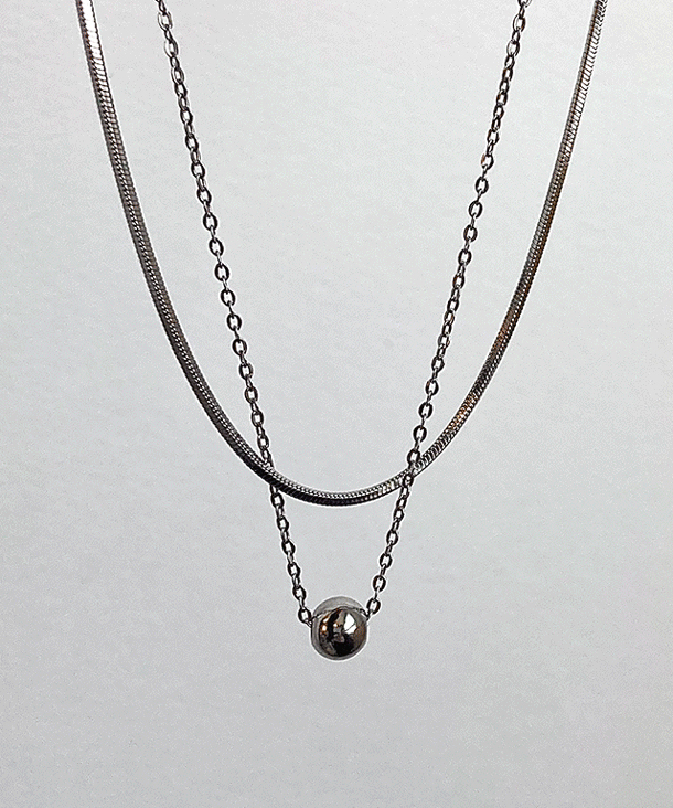 모브 심플 레이어드 목걸이 | 소재 써지컬스틸 및 신주 | 뱀줄 롱 빈티지 액세서리 하객룩 니트