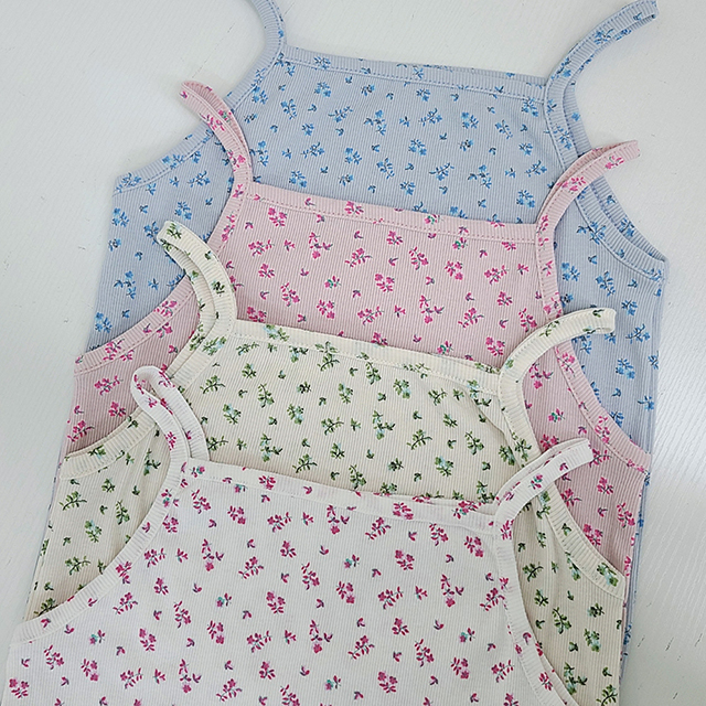 [꾸안꾸🤎/빈티지/몸매보정/딱붙는/쫀쫀/부유방커버/레이어드/이너/유니크/사계절/롱나시/꽃무늬] 몰리 슬림핏 골지 잔꽃 플라워 프린팅 스퀘어넥 홀터넥 세미 크롭 나시티셔츠 민소매