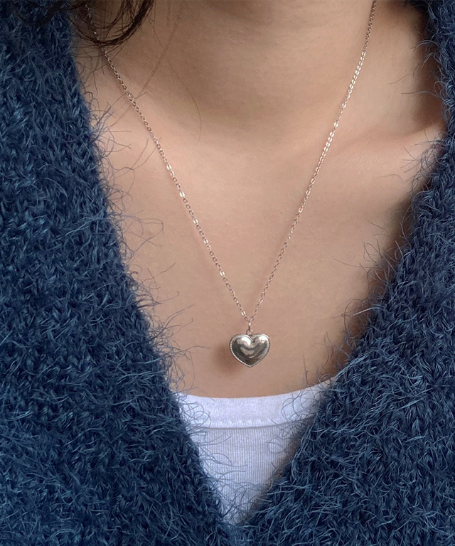 써지컬스틸 빈티지 플랫 하트 목걸이 | 레이어드 써지컬목걸이