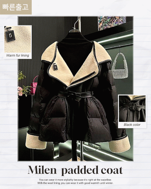[빠른출고] 밀렌 벨트 후드 숏 패딩