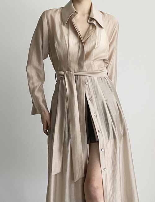 [벨트세트] 메이 핀턱 텐셀 셔츠 롱원피스 [2color]