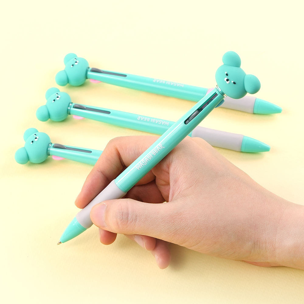와사비베어 피규어 3색 볼펜 0.5mm 피규어 멀티펜 필기 노크식 단체 선물 용