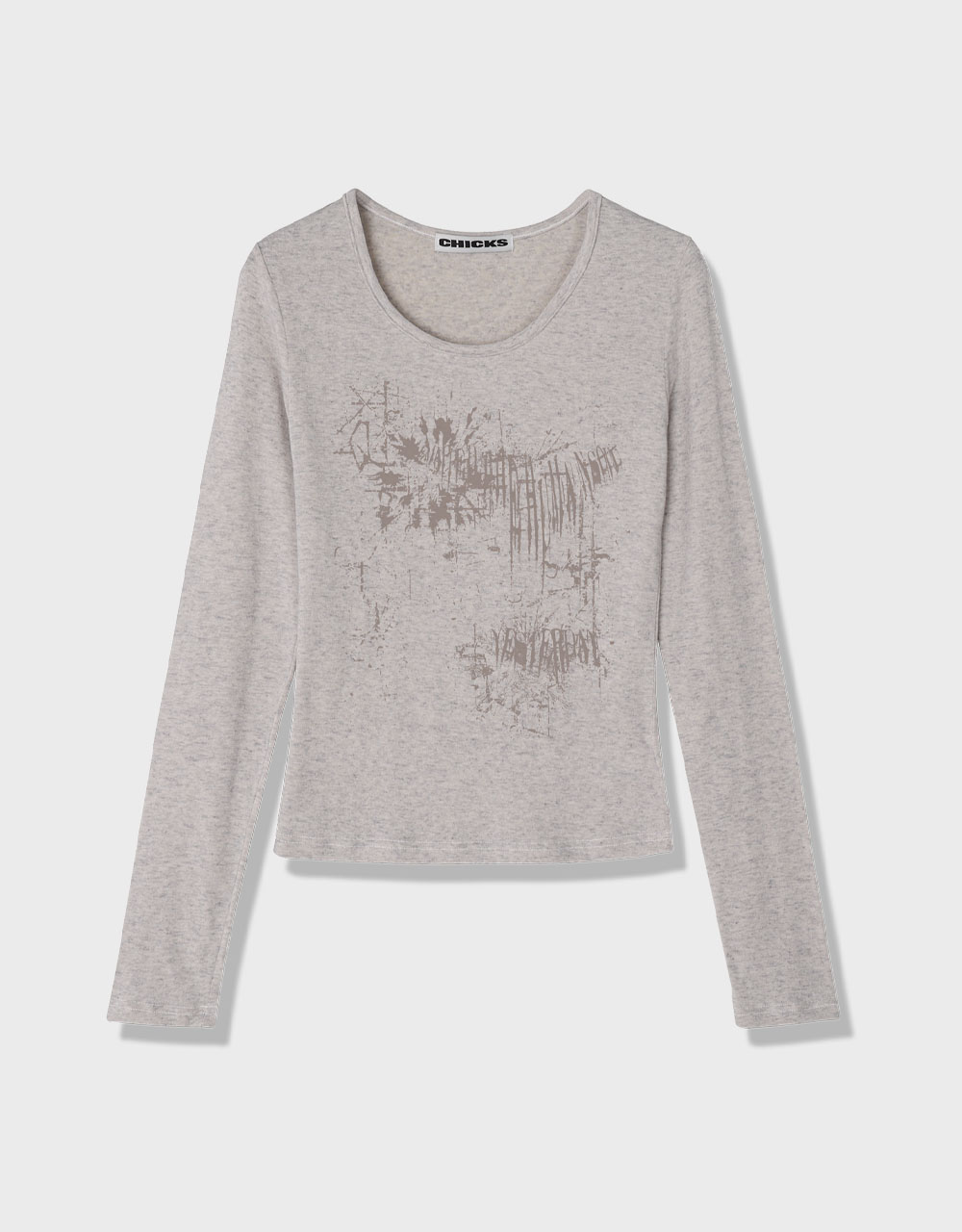 리맵 롱 슬리브 티셔츠 화이트 멜란지