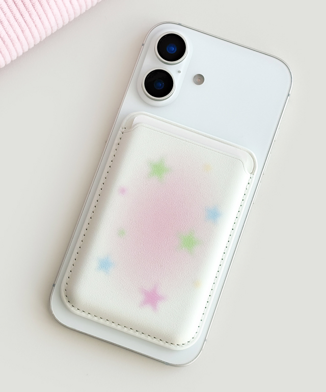 파스텔 별 맥세이프 가죽 카드 지갑 케이스