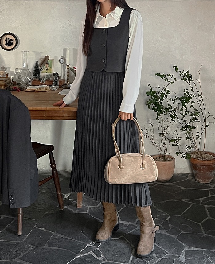 [55-120][셋업룩][밴딩]세미플리츠 조끼 스커트 세트