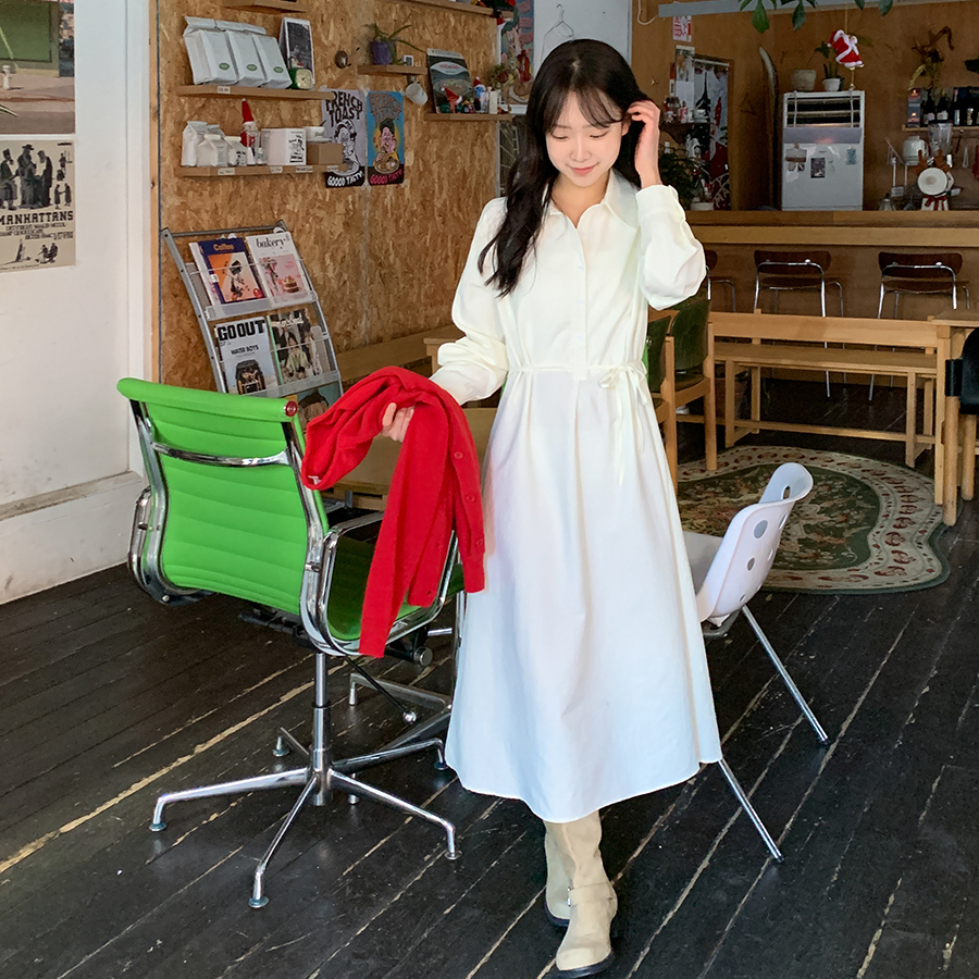 [허리스트링✨롱기장] 스윗버터 카라 셔츠원피스 봄 가을 간절기 롱원피스 레이어드 셔츠원피스 키큰녀 여리핏 체형커버 임부복 통통 루즈핏원피스 플레어원피스 빅사이즈