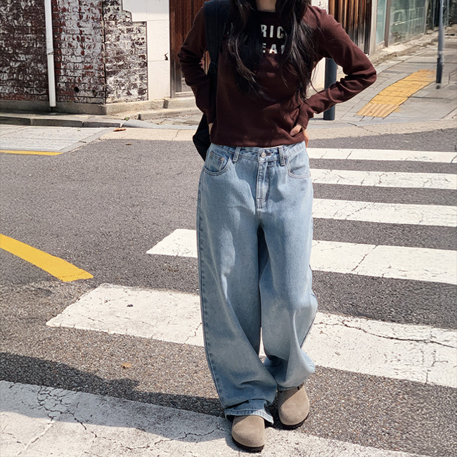 [단독][커브드데님✨하비커버/체형커버/와이드데님/와이드팬츠/난스판팬츠/하이웨스트/벌룬핏/출근룩/포인트룩][made]커브드와이드데님 - 3color