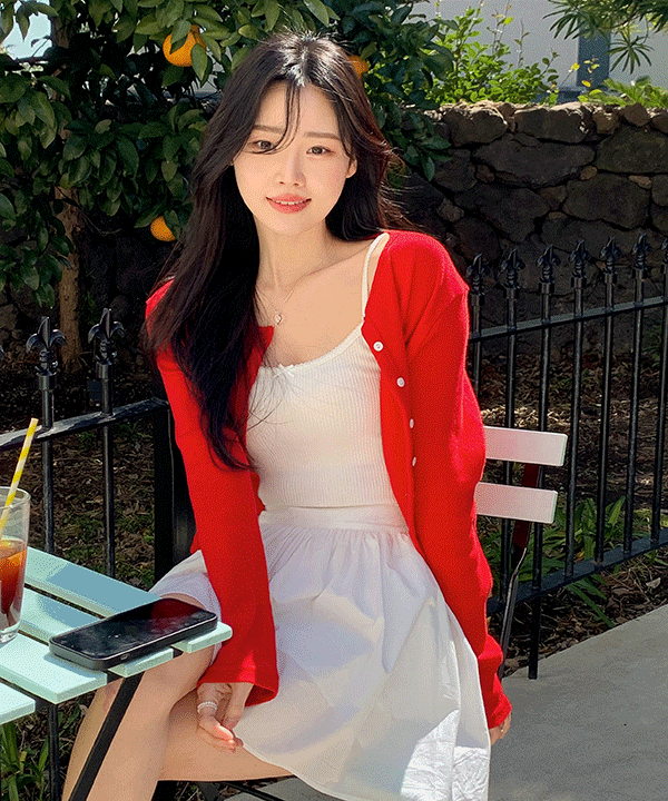 레드 플라워 아일렛 크롭 긴팔 가디건 (4color)