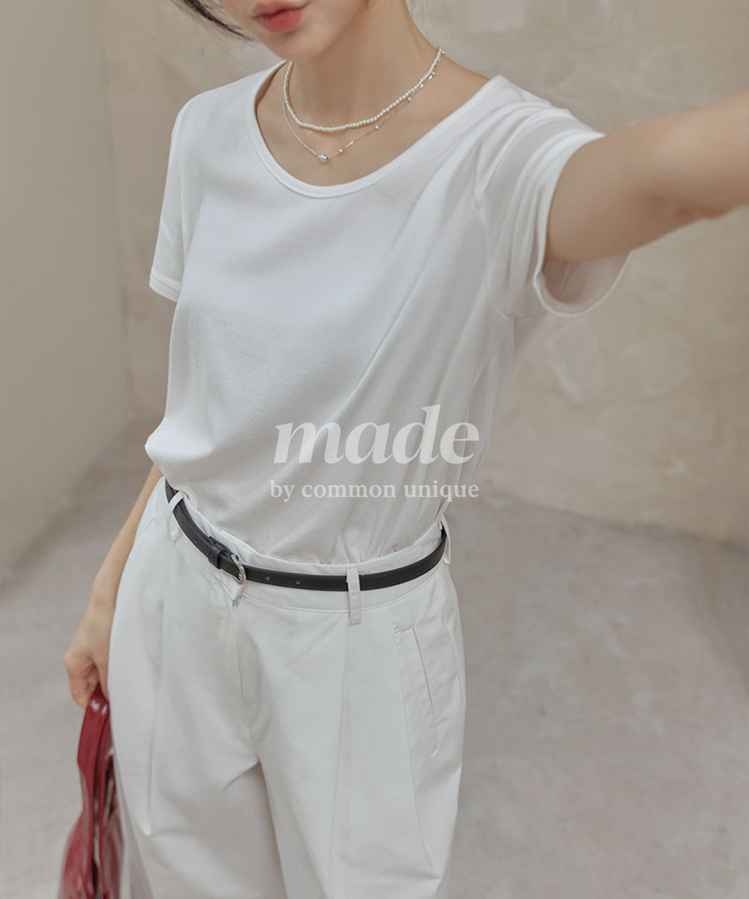 [단독] [MADE] 스키아 모달 U 넥 1/2 티 (당일배송/여름/간절기/가을/사계절/라운드넥/반팔/베이직/기본핏/레이어드/이너)
