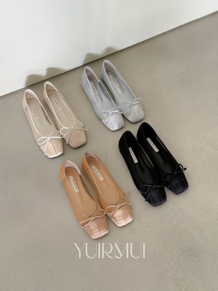 호시 메쉬 새틴 실크 공단 핀턱 리본 플랫슈즈 1cm