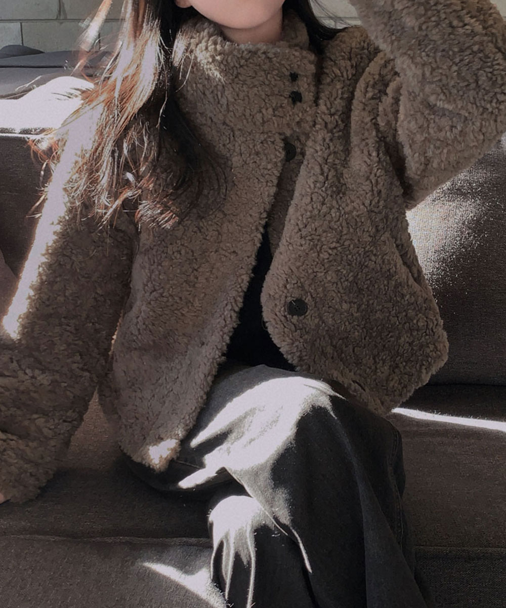 [하이넥ver./아방핏/왕따숩🔥]테디 하이넥 뽀글이 버튼 크롭 퍼 자켓