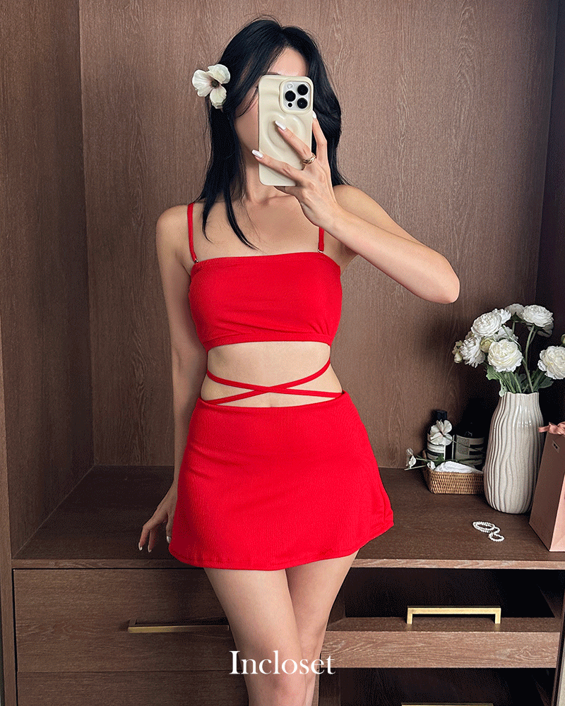 세나 꼬임 치마 비키니 수영복 세트 3 color
