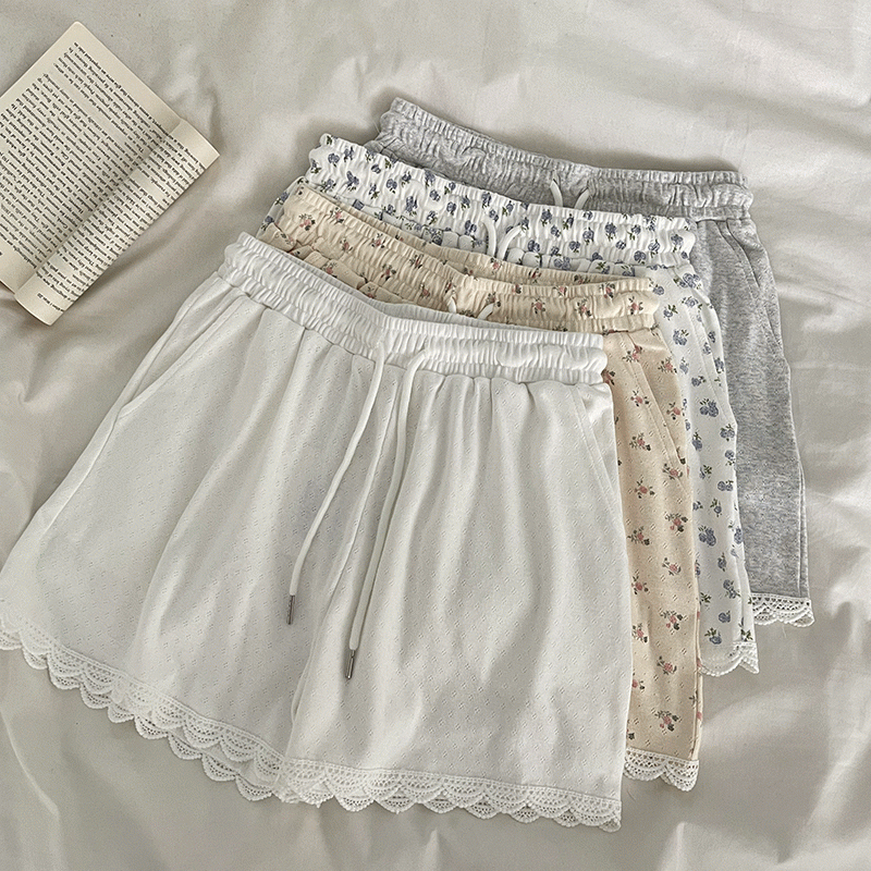 하이틴 키치 레이스 밴딩 끈 플로럴 무지 패턴 반바지 잠옷 이너웨어 홈웨어