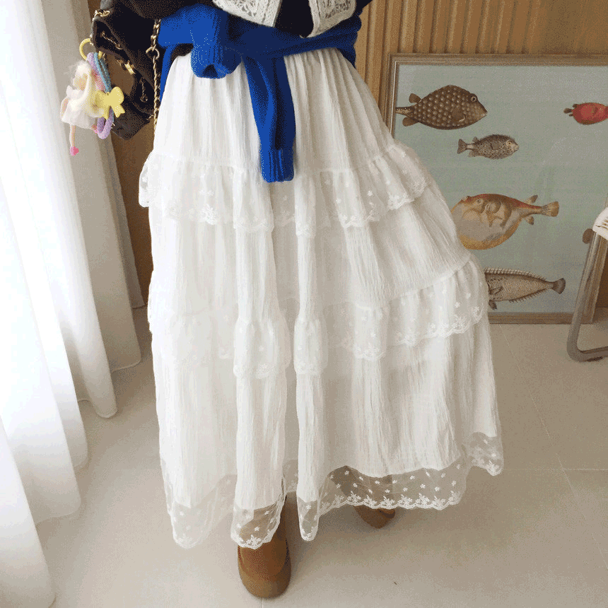 에펠 플라워자수 시스루 펀칭 캉캉 A라인 롱 밴딩 하이웨스트 스커트 (속치마) (2color)