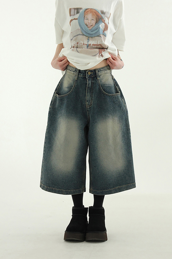brushed denim cropped pants