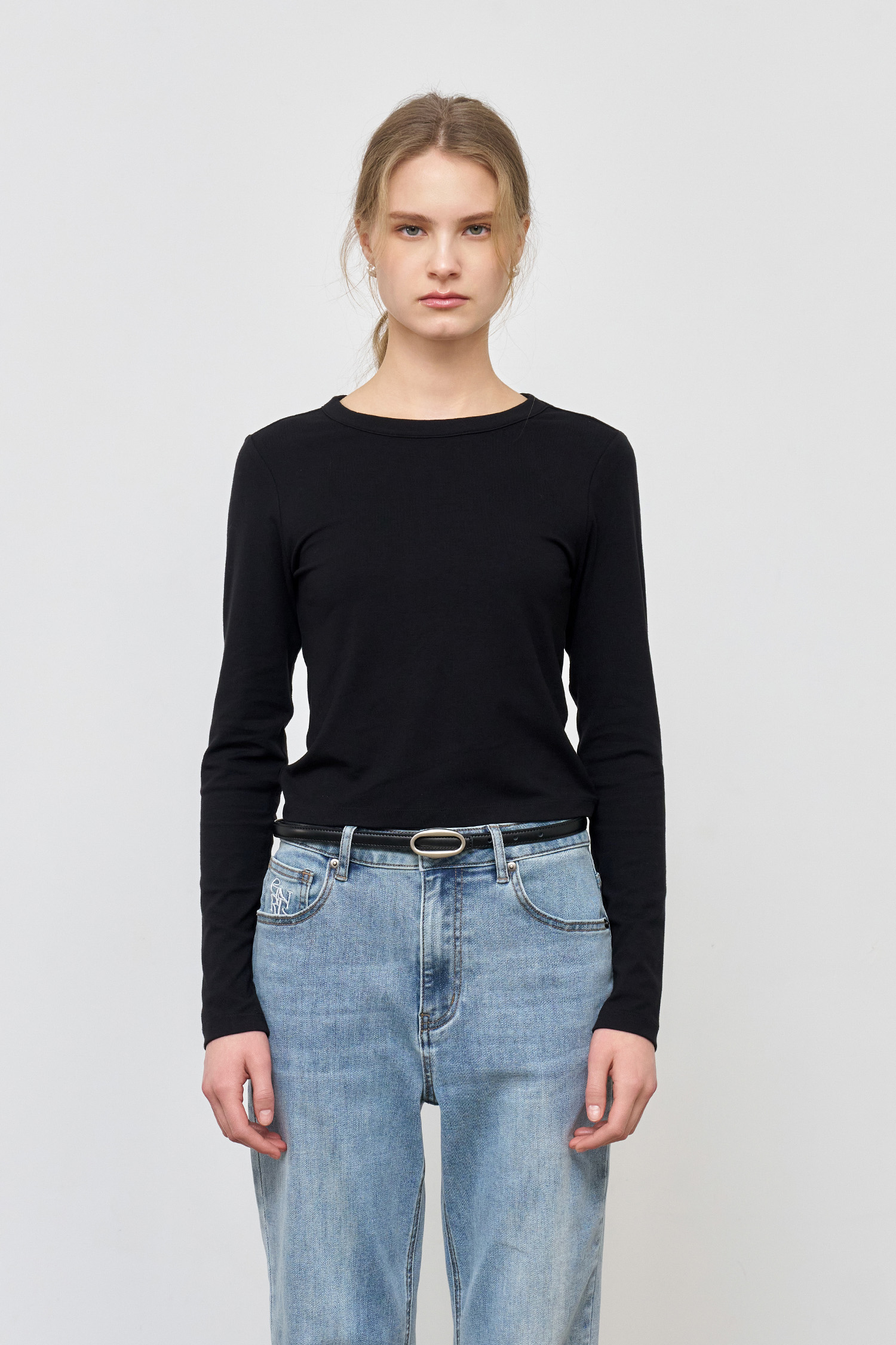 WOMAN 슬림 크루넥 롱 슬리브 티 [BLACK]