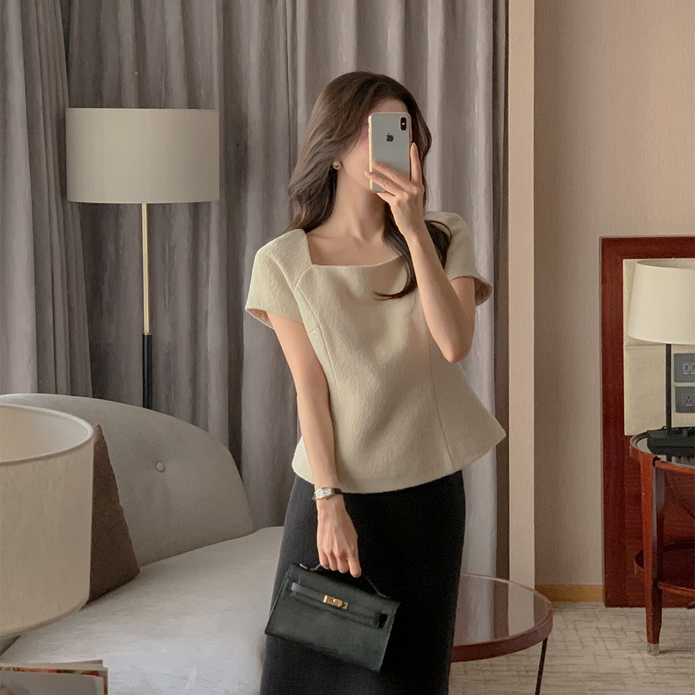 [Premium/울50%]투벤 스퀘어넥 절개 트위드 블라우스(하객룩/출근룩)