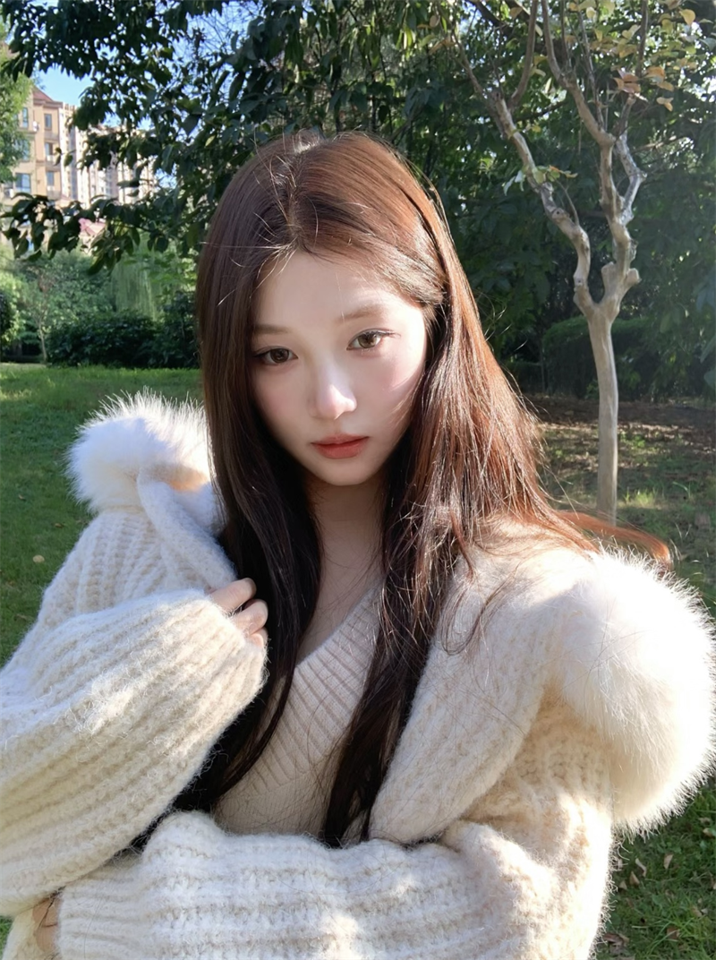 부드럽고 사랑스러운 겨울 스타일 루즈핏 후드 퍼 칼라 니트 가디건