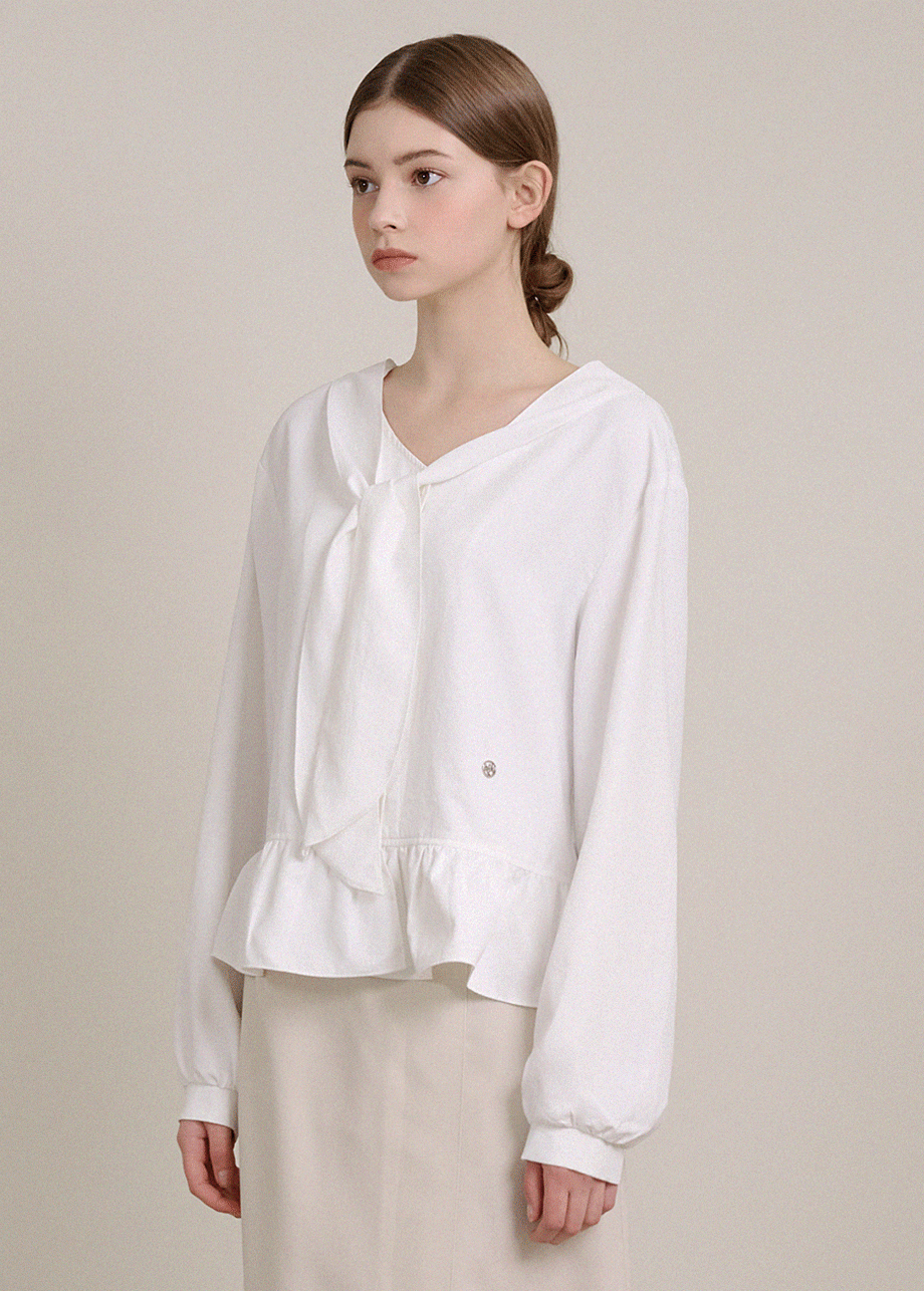 [44-120] Pookie Frill Tie Blouse 푸키 프릴 타이 블라우스 (봄-데일리-데일리룩-출근룩-오피스룩-하객룩-타이-프릴-브이넥-자체제작-빅사이즈)