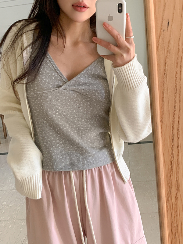 [레이어드/코튼100%]플렌 브이넥 아일렛 플라워 나시 슬리브리스(2color)
