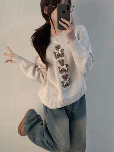 베어무드 리본 루즈핏 봄가을겨울 니트 knit - 3color