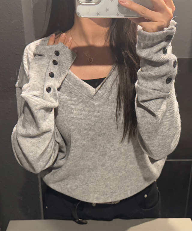 여리핏 버튼 브이넥 울니트 (2col) 소매버튼 브이넥니트 딥브이넥 오버핏 루즈핏니트 봄니트