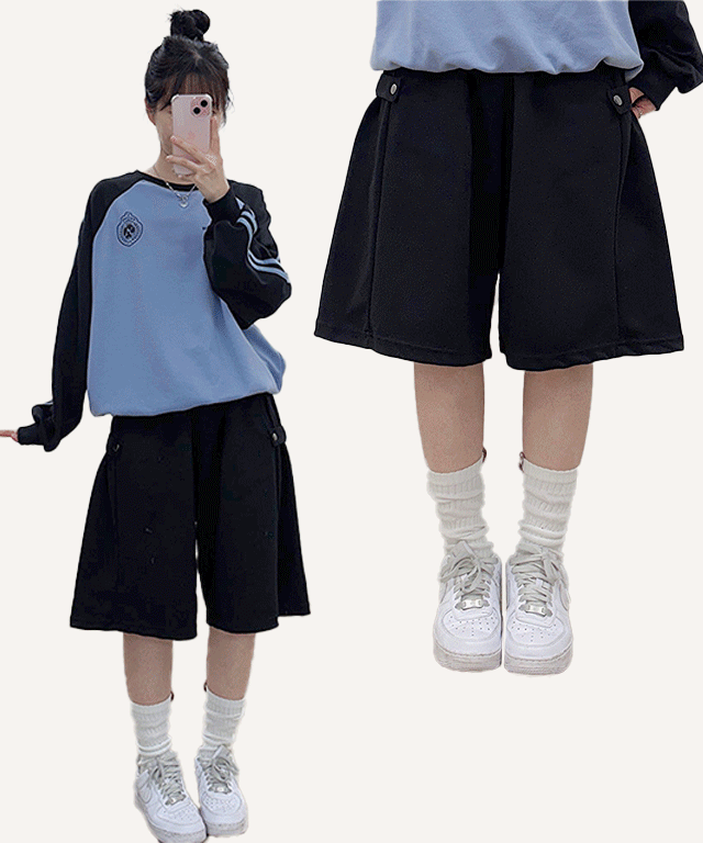 [국내제작/비조버튼] 윙스 비조 스냅 사이드핀턱 버뮤다 와이드 숏 트레이닝 팬츠