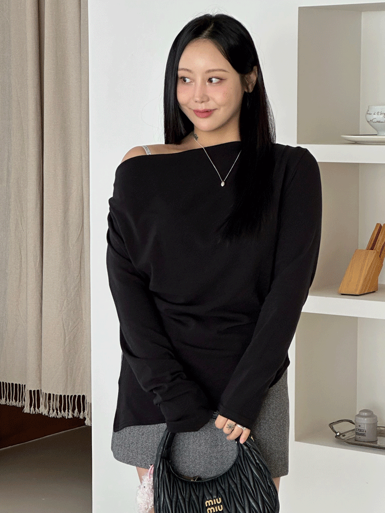 1713 (빅사이즈) 마론 드레이프 셔링 슬릿 원숄더 티셔츠[3color/44-88]