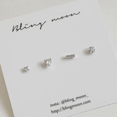 [4 set] 데일리 크리 큐빅 피어싱 세트 / 심플 미니 하트