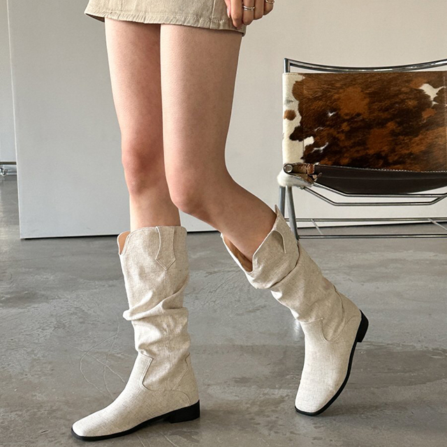 [굽3cm/225~250] 스퀘어 롱부츠 웨스턴 내엥-신발
