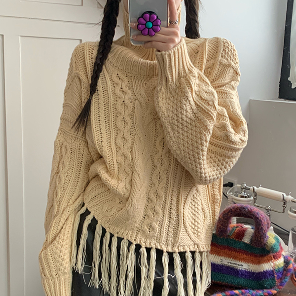터틀넥 태슬 니트 긴팔 티셔츠-yp12213 A32682