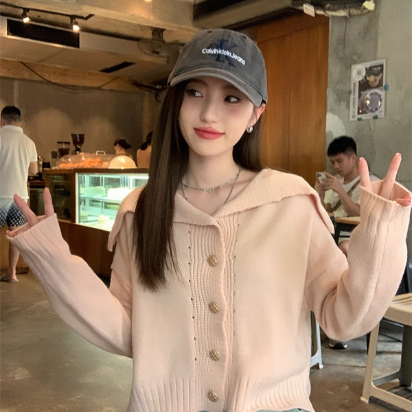 케이프 카라 버튼 니트 크롭 긴팔 가디건-wn1228 OC123865