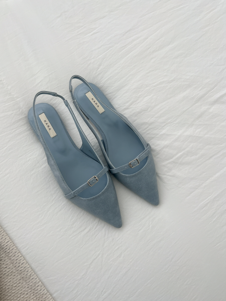 [스틸레토🩶플랫] 포유 벨트 스트랩 낮은굽 슬링백 구두 1cm