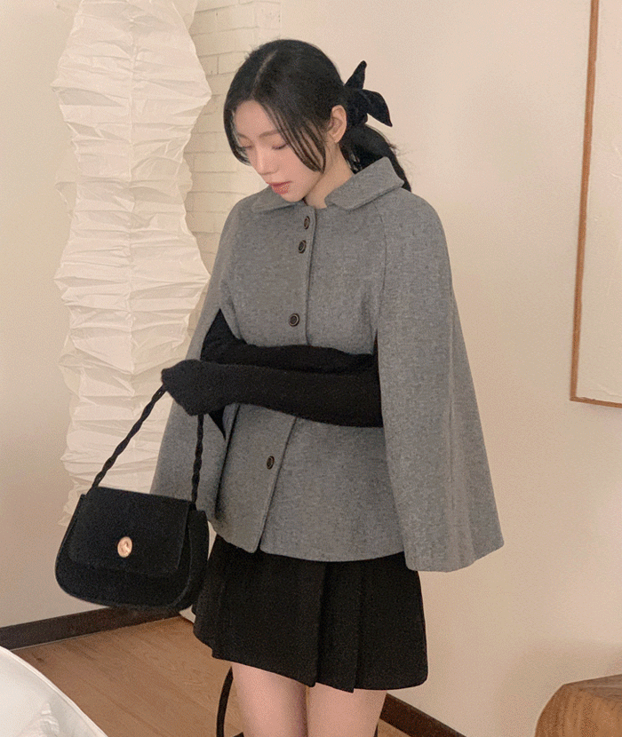 [cashmere/하객룩/졸업식]러므 캐시미어 핸드메이드 케이프 플레어 하프 망토 코트