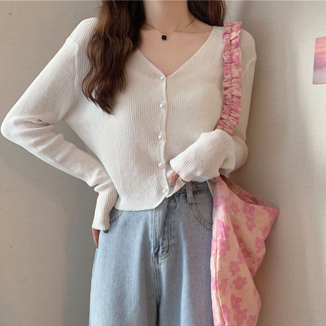 메이킹유 [5color/간절기룩] 베이직 브이넥 진주 버튼 긴팔 니트 가디건 캐주얼 여리핏 3176르멜가디건