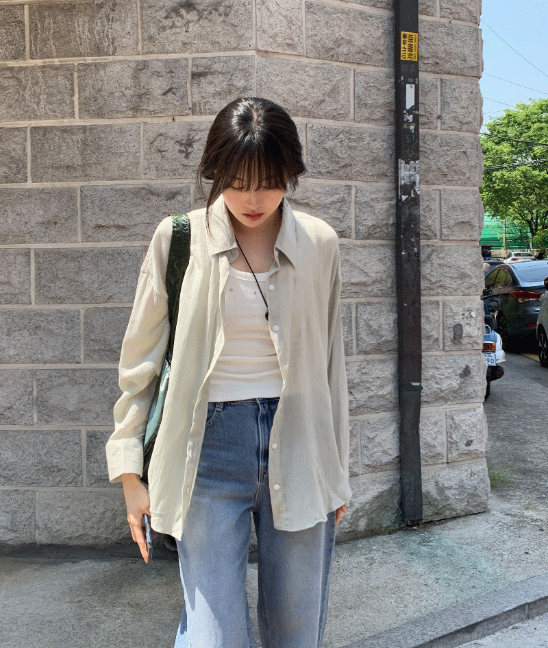[단독/made] 아젤라 시스루 오버핏 거즈셔츠 (살안타템)