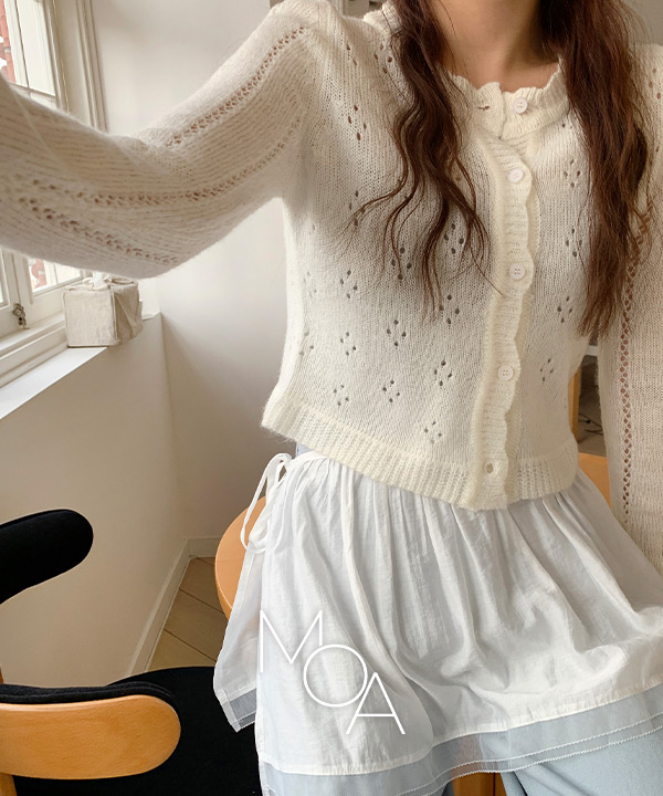 [made] 디너글 물결넥 펀칭 니트 가디건 -4color (데이트룩/펀칭가디건/물결가디건/파스텔가디건/가을가디건/가을아우터)