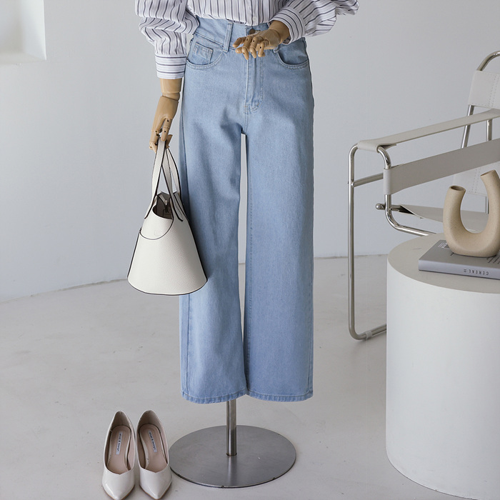[55~77]투버튼 허리밴딩 와이드 데님 팬츠_T2501DP003A
