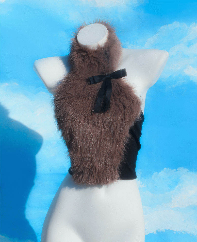 라이칸스로프 웨어울프의 홀터넥 퍼 나시티 (페이크퍼,무대의상,아이돌룩,클럽,댄스,핫걸)