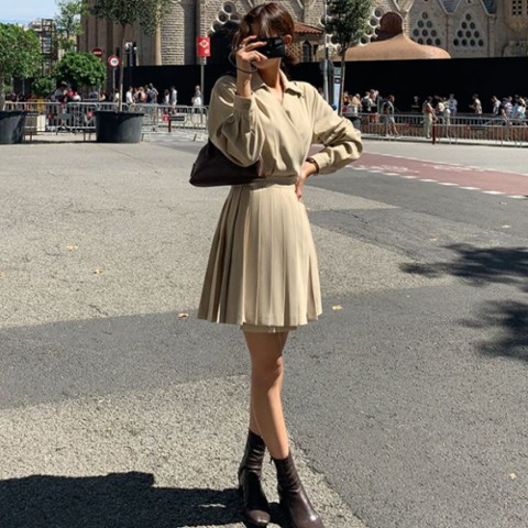 플리츠 2단기장 하객룩 결혼식 에시안원피스