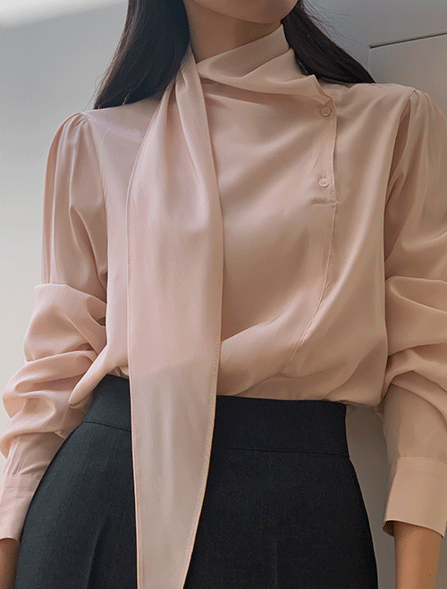 [하객룩🤍] 샴페인 타이 블라우스 (겨울/데일리/데일리룩/출근룩/데이트룩/격식룩)