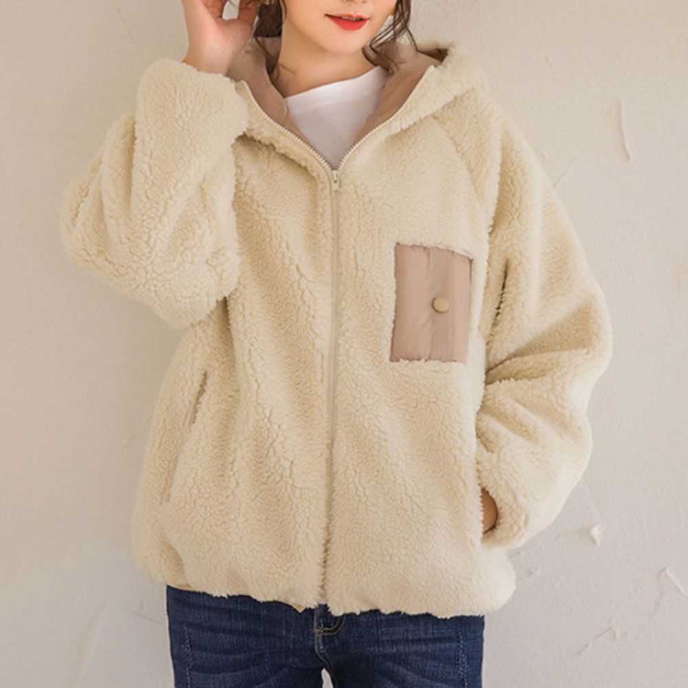 후드 후리스 뽀글이 잠바 주머니 배색 캐주얼룩