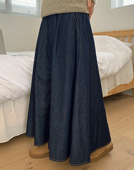 노티니 밴딩 핀턱 데님 롱 스커트 (2color)