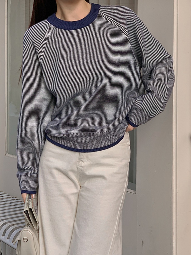 [44-88]레니프아 울 스트라이프 래글런 니트 (신상-봄-봄니트-데일리룩-캠퍼스룩-개강룩-러블리룩-줄무늬-단가라-나그랑-빅사이즈-88사이즈-아방-모던-베이직-캐주얼-기본템)