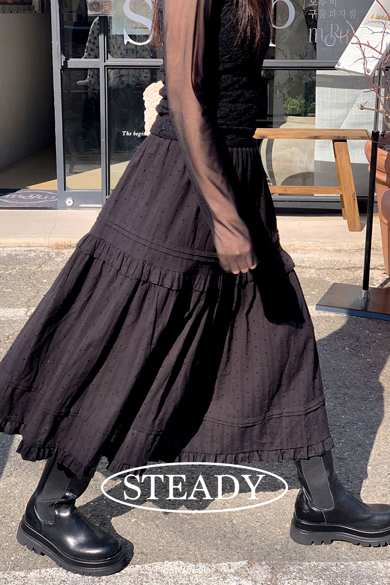 [당일출고/가을🍂/44-77] 앤스 캉캉 프릴 롱스커트 스커트 빅사이즈 (2colors)