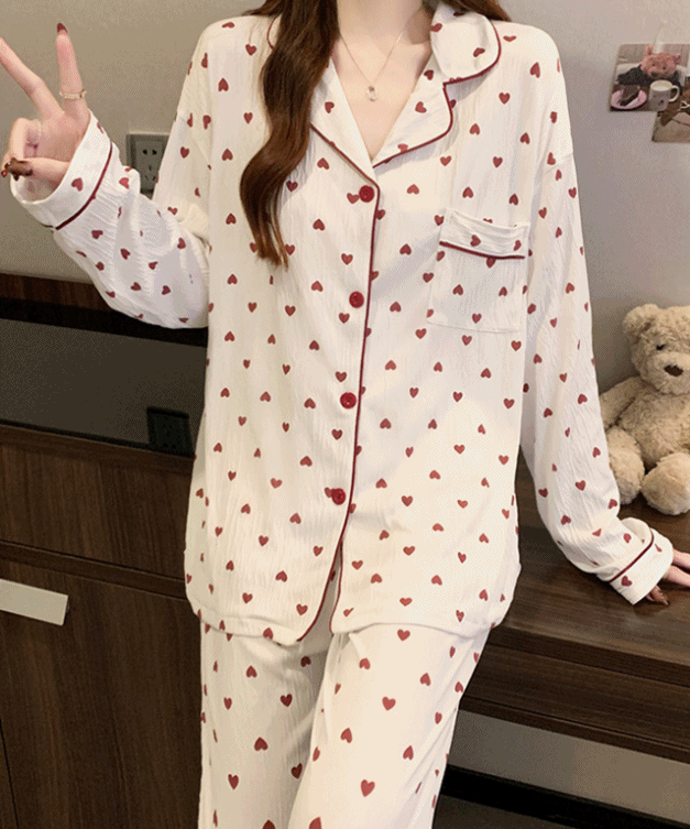 당일출고/ 긴팔 귀염뽀짝 밀크하트 파자마 잠옷 상하세트 홈웨어 (3245)